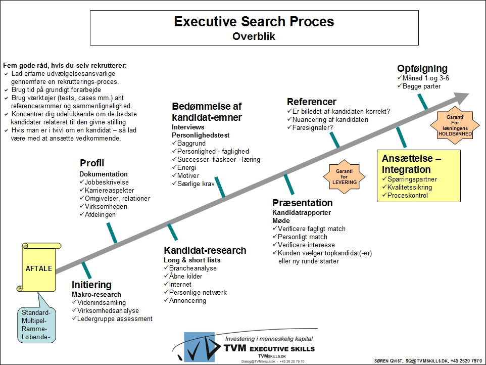 TVM Executive Search er en ydelse, der tilpasser sig disse forudsætninger ved at være baseret på indsigt, grundighed, erfaring og anerkendte værktøjer. Derfor tilbyder vi altid interviews/assessments af nøglepersoner inden opstart og som en del af vores ydelse.